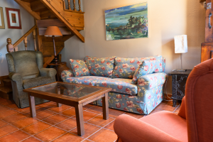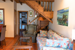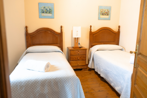 - Planta primera: dormitorio 1 (cama nido con dos camas de 0,90 m), dormitorio 2 (cama de matrimonio 1,35 m) y baño