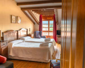 - Planta bajo cubierta: dormitorio 3 (cama de matrimonio 1,35 m), dormitorio 4 (dos camas de 0,90 m) y baño.
